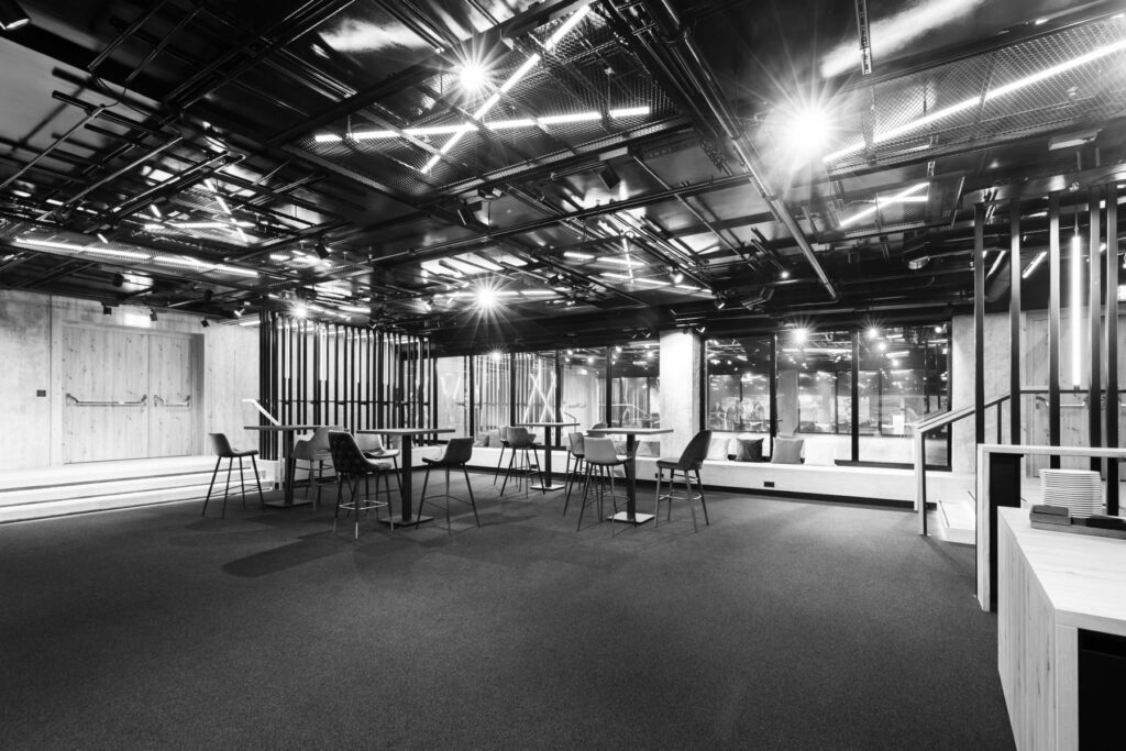 Besondere Aufmerksamkeit galt den hohen Anforderungen an den Schallschutz. Zusätzlich zu neuen WC-Bereichen in ehemaligen Büroräumen wurden die vorhandenen Sanitäreinrichtungen modernisiert, um den Komfort und die Funktionalität zu maximieren.