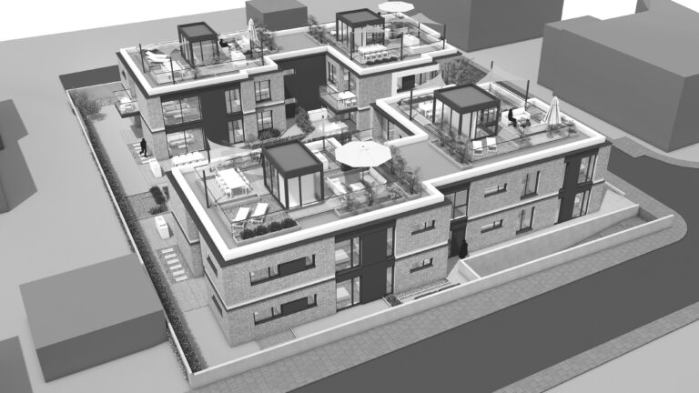Im Essener Süden soll ein exklusives Mehrfamilienhaus mit Dachterrassen und Tiefgarage entstehen. Die Planung aller Leistungsphasen für die TGA und Elektrotechnik begann 2021. Mit den Bauarbeiten wurde 2023 begonnen.