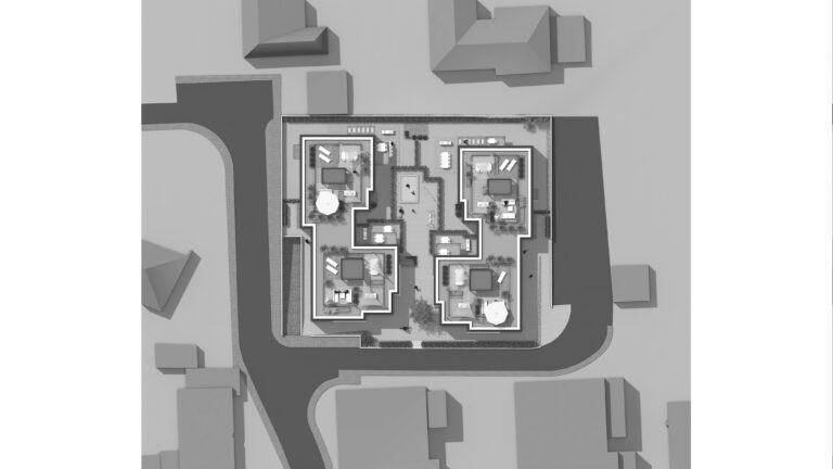 Auf dem Flachdach der Häuser, zwischen den Dachterrassen, sollen kleine Mikro-PV-Anlagen errichtet werden.